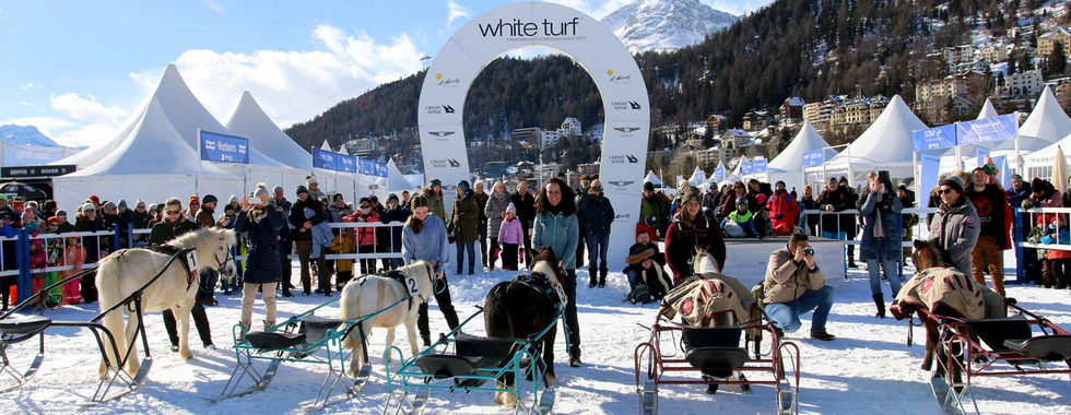 After we checked into the Hotel Europa, we walked from the hotel through the forest into town. In the town, we saw strange enough a lorry dumping fresh snow. Small trucks brought the fresh snow further on the lake. They were preparing a track. A huge preparation was going on. Many hospitality tents were on the ice as well. We found out that on coming Sunday, February 4 till the 18th, the White Turf St. Moritz would start, an international horse race event on the snow of the frozen lake. A huge event with over 50.000 visitors. We were just a few days too early but this is such a nice event that I shared some pictures I found on the event website from Sunday February 4.